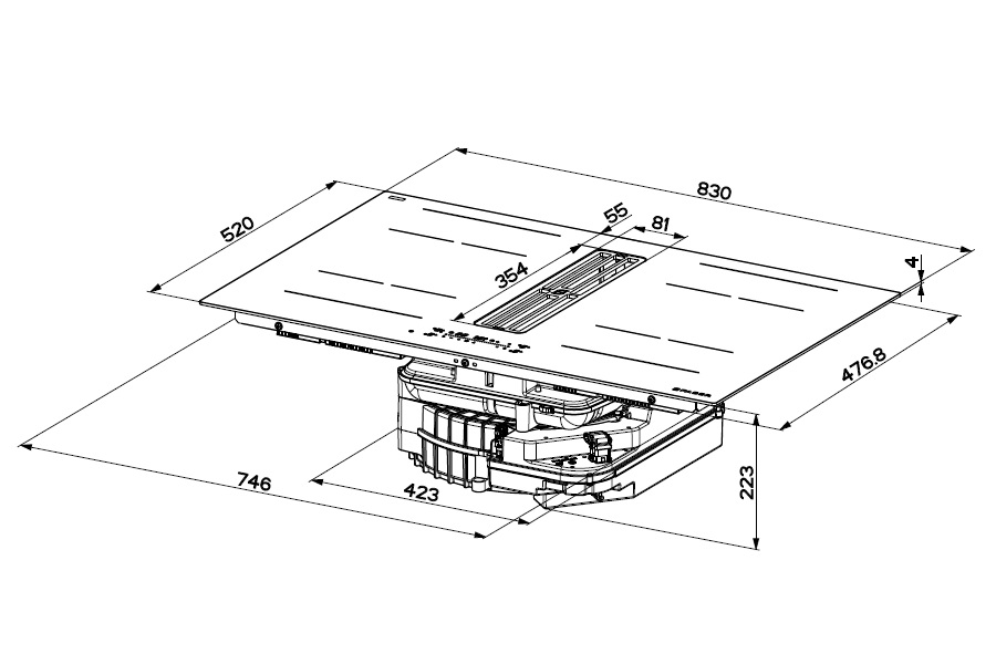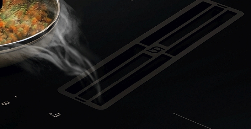 Okap i płyta tworzą znakomicie wydajny duet, charakteryzujący się dbałością o szczegóły i niesamowitą wydajnością. Niewidoczny, ale niezwykle funkcjonalny Galileo, to idealne połączenie okapu i płyty grzewczej w pojedynczym urządzeniu przeznaczonym do zabudowy w blacie kuchennym. Płyta jest sterowana suwakiem dotykowym, a wbudowany okap oferuje 10 prędkości zasysania. Urządzenie jest bezpieczne i ciche. Imponująca wydajność okapu 720 [m3/h]i tylko 59 dB(A) dla prędkości maksymalnej. Elementy sterujące umieszczone w centralnej części posiadają białe podświetlenie, a podwójne, duże strefy BRIDGE płynnie dopasowują się do naczyń o dowolnym rozmiarze i kształcie.